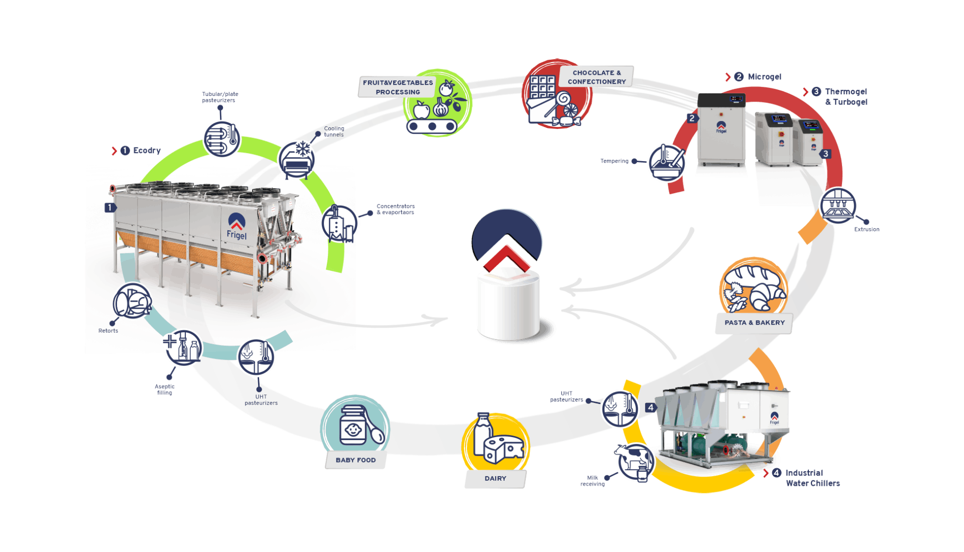 Le alte prestazioni incontrano la sostenibilità. L'energia utilizzata dai processi può fare una grande differenza per i costi dei processi. <br> Frigel ha un'estesa gamma di soluzioni.